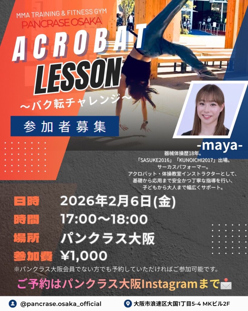 当日はバク転チャレンジとして、パンクラス会員様以外でも参加が可能となっております。