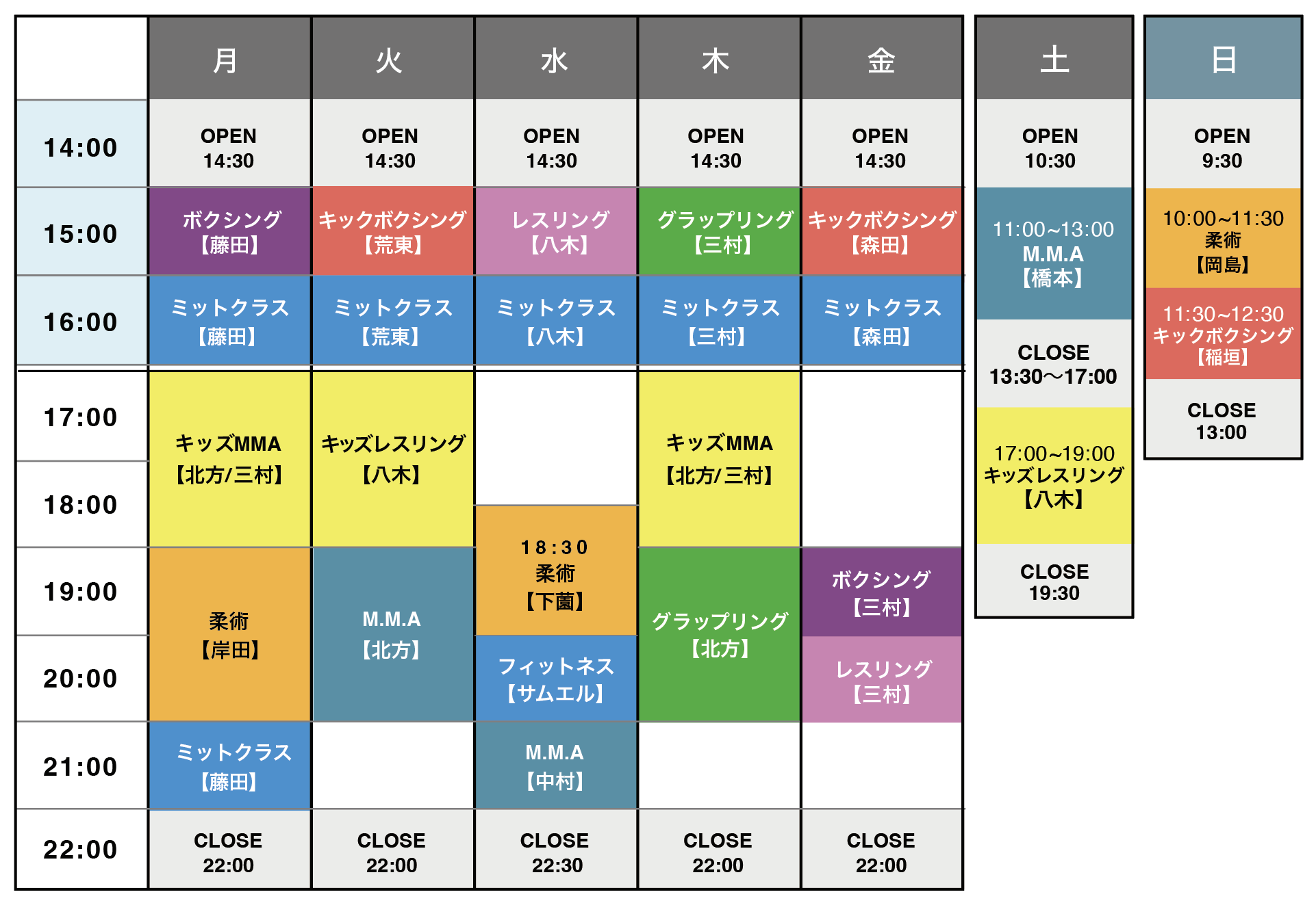 柔術やレスリングのコーチも日本トップレベルの講師を配置、プロのみならずアマチュアMMAや柔術等、一般会員様からも沢山の方々が実績を出されています。